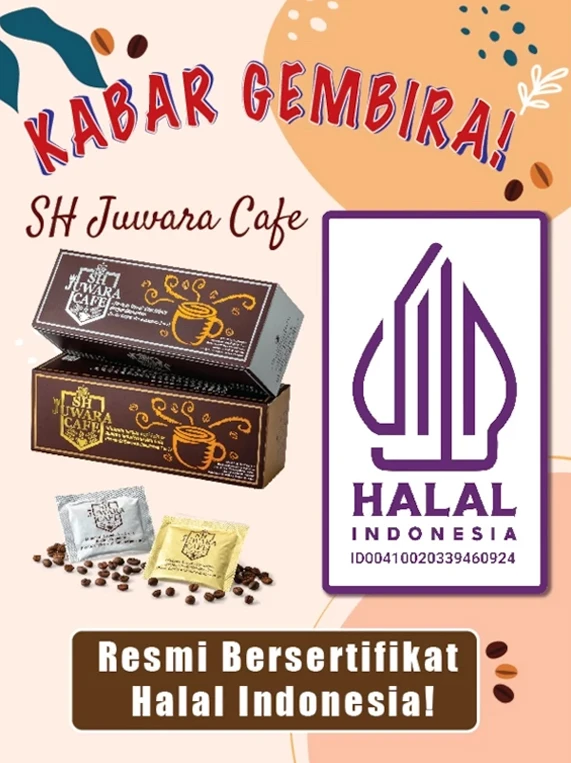Kopi Juwara atau Kopi SH Juwara Cafe adalah kopi Arabica pilihan dari Brazil yang telah lama dinantikan kehadirannya di Indonesia. Dibuat dengan 100% biji kopi premium dari Brazil, creamer berkualitas tinggi tanpa lemak trans, dan Yung Kien Ganoderma untuk kesehatan hati dan meningkatkan imunitas.
